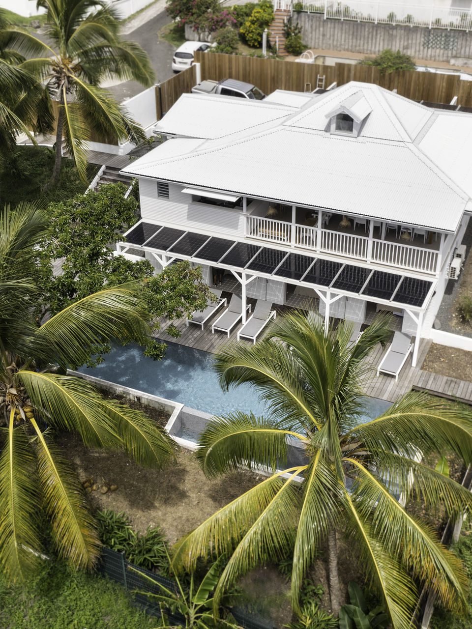 Villa d'exception de 500m2 avec accès privé à la plage à l'Anse des Rochers à Saint-François. Confort exceptionnel avec une atmosphère intérieur/extérieur et une piscine à débordement. La villa se compose de 4 chambres doubles et 1 chambre de 4 lits superposés avec chacune sa propre salle de bain. Elle peut accueillir 12 personnes et est très bien ventilée. Au rez-de-jardin vous profiterez d'une grande terrasse couverte et ses transats donnant sur la piscine à débordement et au rez-de-chaussée une seconde terrasse couverte et sa cuisine américaine toute équipée donnent sur une belle vue mer et sur la piscine. Le grand espace autour de la villa vous offre une luxuriante végétation qui vous plongera dans l'ambiance caribéenne dans n'importe quel coin de la villa.